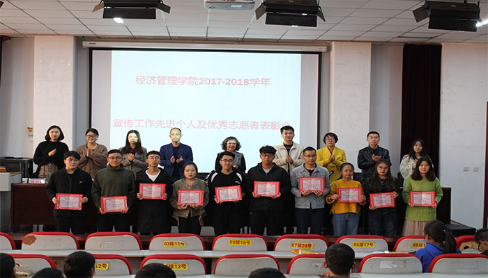 院党委副书记杨振东宣读了《必赢76net线路关于表彰宣传工作先进个人和优秀志愿者的决定》,决定对10名宣传工作先进个人及20名优秀志愿者予以表彰,院领导为获得优秀志愿者及宣传工作先进个人荣誉称号的同学颁发荣誉证书,并合影留念,优秀志愿者和宣传工作先进个人代表分别发表了获奖感言。
