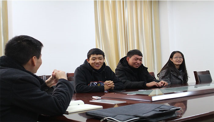 会上,杨振东关切询问了少数民族同学的生活、学习情况,对大学生活是否适应,遇到的困难等,并请大家对学校、学院存在的不足提出宝贵意见。同学们积极发言,纷纷表达自己的感受,来自新疆的布阿依仙木目前担任国贸1601班团支书,她认为自己的大学生活收获很大,尤其是担任团支书,从一开始工作时的紧张、担忧,到现在的游刃有余,能力得到了锻炼和提高,自身也成长了许多,对未来充满了信心。同为新疆姑娘的古丽妮尕尔则表示自己参加了很多社团活动,还在校艺术团担任过队长,通过这些活动,既发扬了自己的兴趣爱好,也锻炼了自己的能力,还交到了很多朋友。来自西藏的毕业班学生杂玛财加则表示进入大学以后,觉得同学们都很活跃,有很多技能,都很厉害,自己从他们身上学到了很多东西,受益很多。同学们表示学习上存在一定压力,但通过努力,目前学习情况良好,有的同学在准备考研,毕业班同学则在积极找工作,准备报考公务员、银行等。同学们还就学校餐厅饭菜价格、卫生情况以及实习的内容和时间安排等提出了意见和建议。