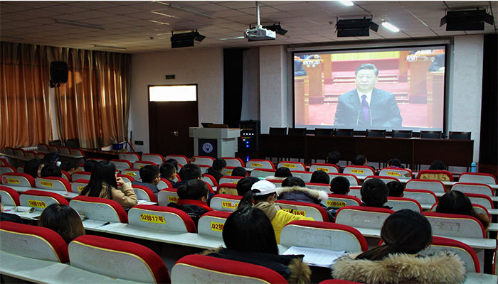 收看过程中,师生们认真看、认真听、认真记,大家怀着崇敬的心情,共同感受祖国强劲的脉搏,共同畅想祖国美好的明天。