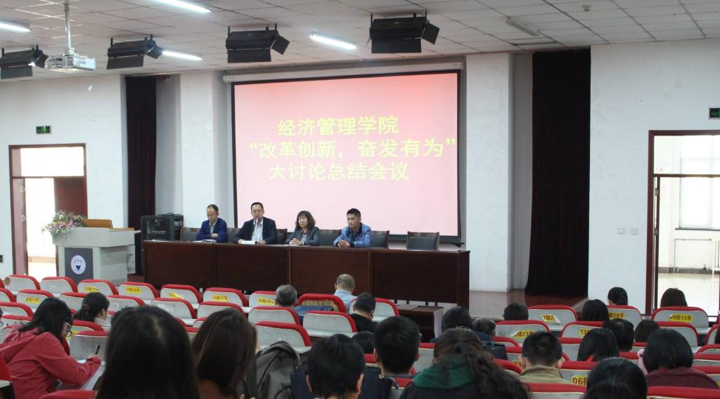 4月30日下午,学院在经管楼二层报告厅召开“改革创新,奋发有为”大讨论总结会,学院全体领导、教师参加会议,会议由院党委书记李玮主持。