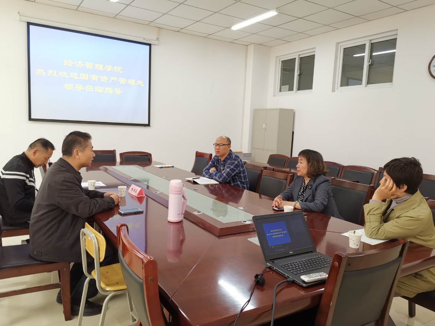 2019年5月6日,国有资产处杨国佐副处长一行2人来学院座谈交流,在226会议室与经管院李玮书记,相关行政人员、实验室资产管理员就国有资产管理工作进行座谈及交流。