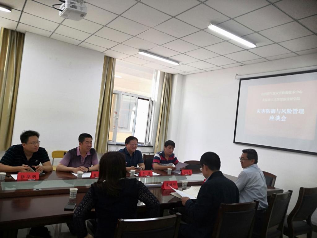 山西省气象灾害防御技术中心副主任张建新、高级工程师张华明、工程师胡俊青以及学院薛晔教授、刘耀龙老师等参加座谈会。