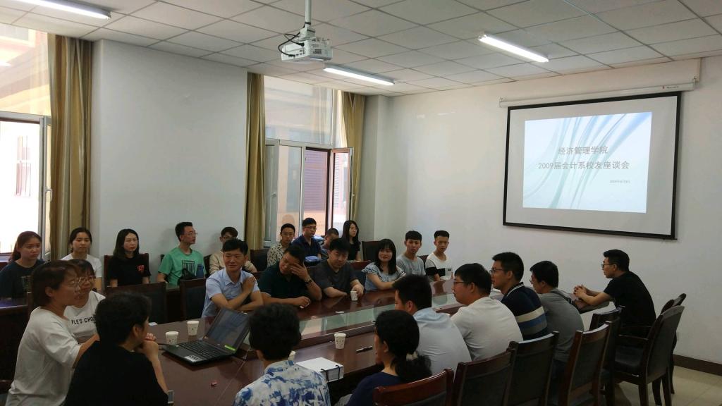 6月9日上午10:00,学院会计系2009届校友座谈会在学院226会议室召开,会计系新老系主任王聪、赵丽萍等六位老师、九位2009届会计毕业生和近30名会计专业本科生和硕士生一起参加座谈,会议由院学工办主任梁泽莹主持。